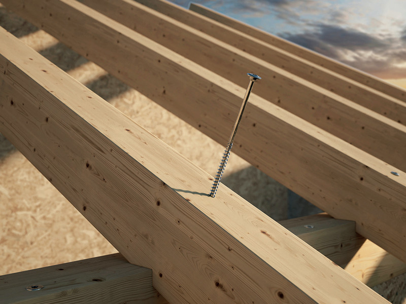 Ta vijak je zelo pogosto uporabljen vijak za lesene konstrukcije, predvsem tam, kjer je potrebna večja sila pritrditve. Vijak s ploščato glavo se od običajnih lesnih vijakov razlikuje po glavi prirobnice, ki opravlja funkcijo podložke in zagotavlja visoko natezno trdnost. Vijak je certificiran za konstrukcijske aplikacije, ki so izpostavljene obremenitvam v kateri koli smeri glede na os (α = 0° – 90°). Dobavljiv je v različnih debelinah in dolžinah.
